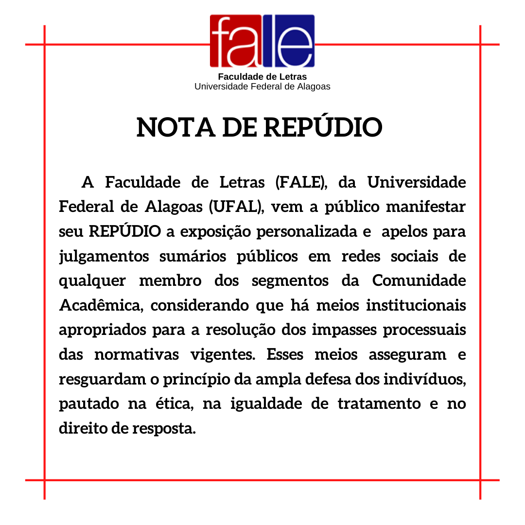 Nota de repúdio https://fale.ufal.br/institucional/informes/nota-de-repudio https://fale.ufal.br/@@site-logo/FALE2 Menor.png Nota de repúdio - Atualizado em .